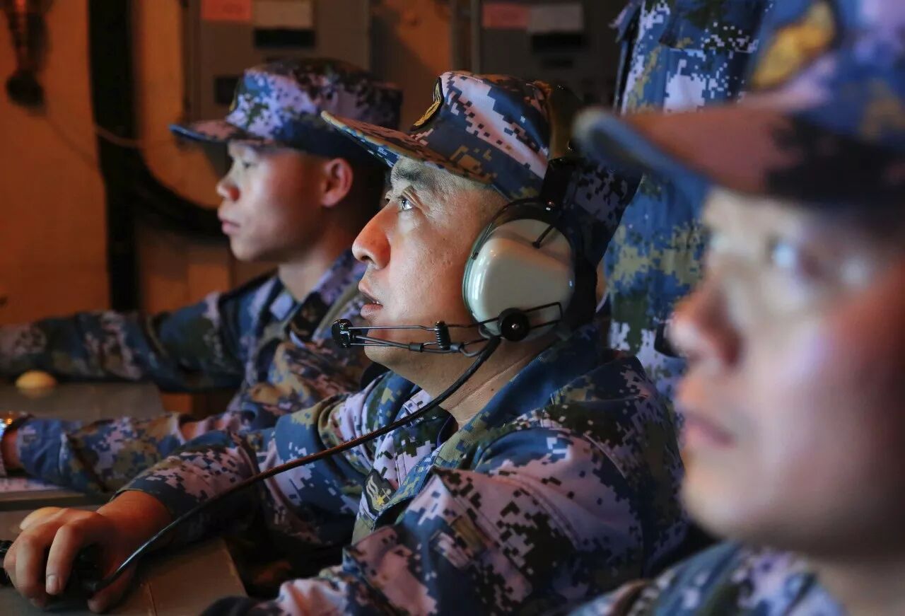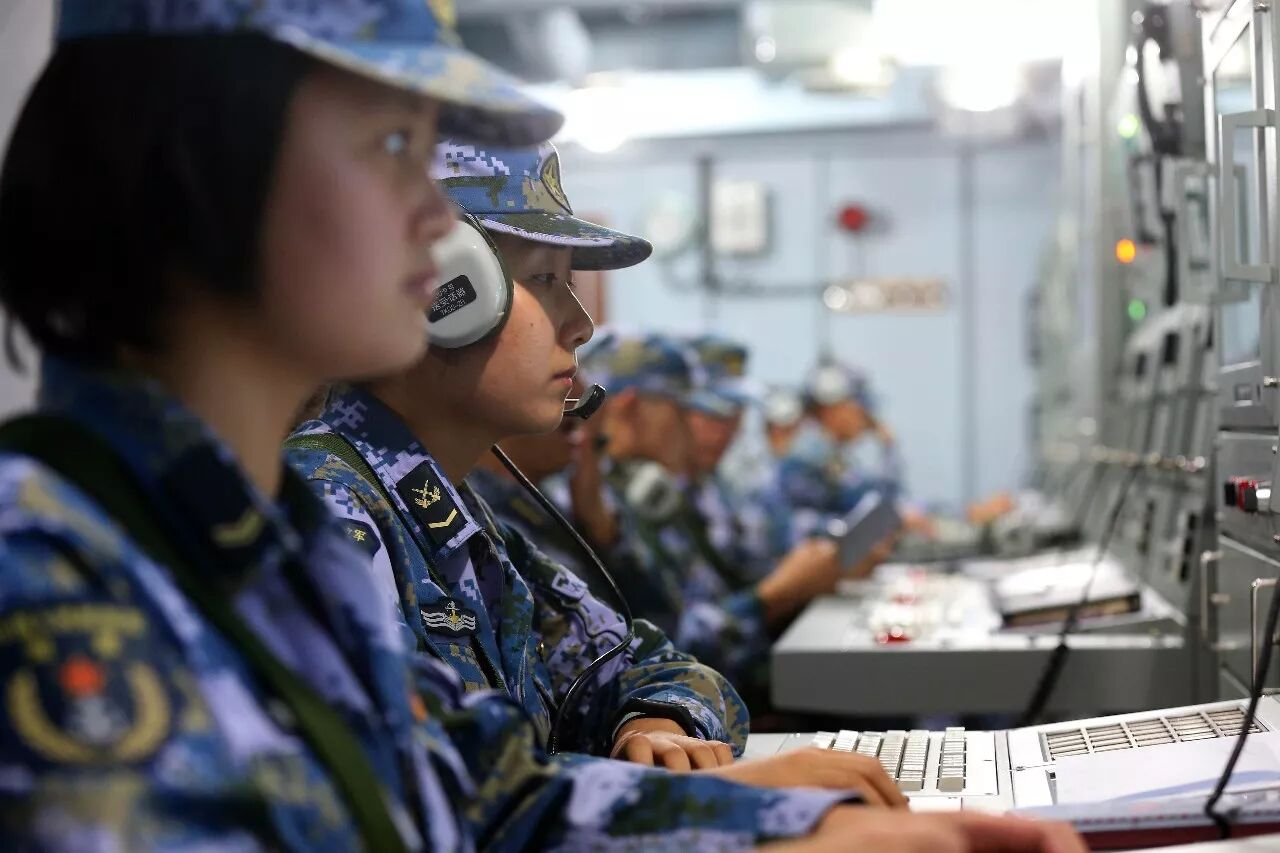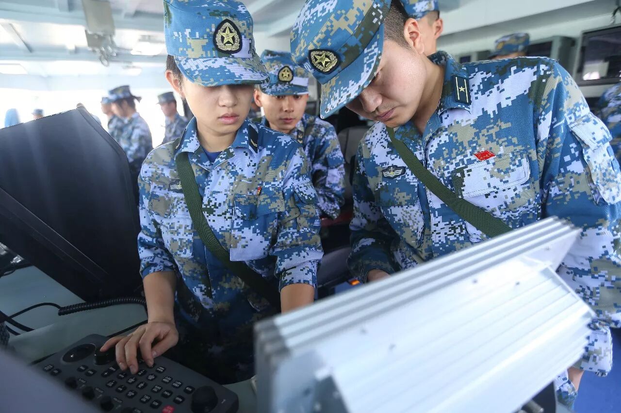 指挥舰厦门舰上,海军考核组通报:前方发现浮雷!株洲舰、昆山舰等4艘舰艇立即抢占有利阵位,依次射击。