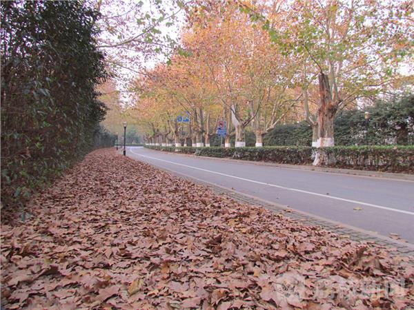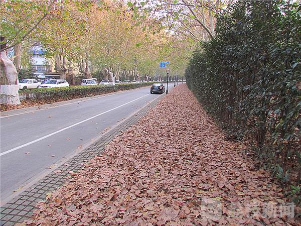 气温走低,落叶归根。为了让市民和游客欣赏到原汁原味的秋色,在南京东郊风景区,有一条南北方向的陵谷寺路,路面被保洁员扫得干干净净,两侧人行道留有落叶,使其成为“落叶景观路”,供游客和市民赏秋,让落叶成为城市另外一道美丽的风景。