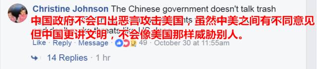 中国政府不会口出恶言攻击美国,虽然中美之间有不同意见,但中国更讲文明,不会像美国那样威胁别人。