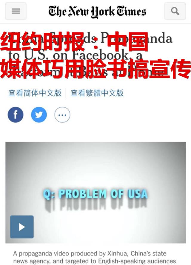 看到美国网友在评论区如潮水般的“爱意”,《纽约时报》坐不住了,在11月8日发表题为《中国媒体巧用脸书搞宣传》的文章,用6段文字描述短视频,并转载视频片段,说中国媒体试图通过社交媒体影响美国民众。