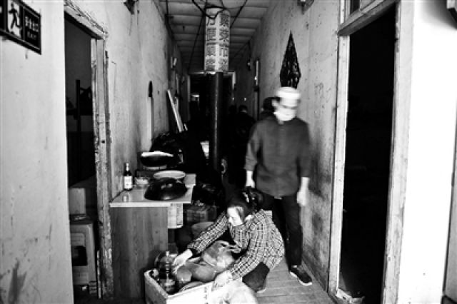 在高楼耸立的保福寺桥边上,一栋低矮的房屋很难引起人的注意。北京青年报记者走进狭窄的房屋门看见,里面有一条黑乎乎宽度不到1米的通道,通道两边都是出租房屋,每个房屋面积只有10余平方米。在楼道中间还堆放着用于做饭的燃气管等易燃物品,电线四处垂落,安全隐患较大。