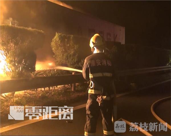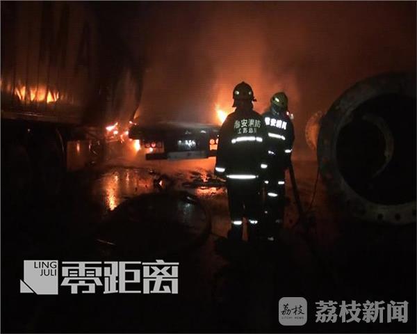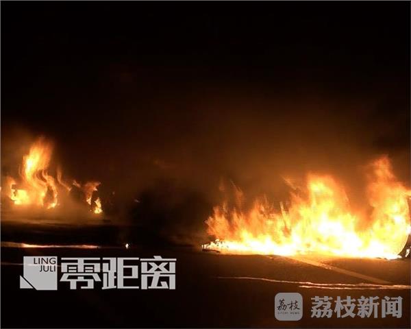 今天(28日)凌晨,在G25长深高速淮安市涟水县河网乡段,有两辆行驶中的货车追尾并起火,其中一辆货车上装的是猪肉,事故导致4人受伤。
