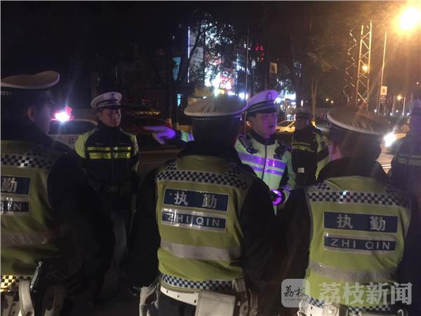 11月30日晚间,南京江北新区交警支队集中整治违法交通行为。