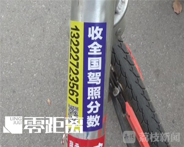 如今南京不少共享单车上,都贴着高价收购驾驶证分的小广告。