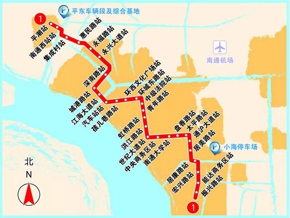 南通市轨道交通1号线一期工程起自通州区平潮站,线路经过沪通铁路南通西站、长泰路、永和路、纬六路、人民路、工农路、崇川路、新开路、通盛大道,止于开发区振兴路站,全程39.2公里。