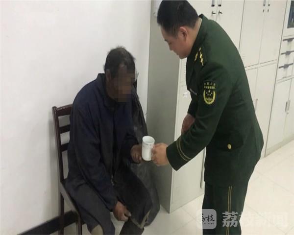 在派出所里边防民警发现衣衫褴褛、满面污垢,民警立即将老人搀扶到派出所内进行询问,发现老人思绪混乱、言语不清被冻得瑟瑟发抖,民警给老人倒了热水先老这暖暖身子,又通过公安平台走失人员信息核查、多方比对,最终确认了老人的身份,并及时联系老人的家人。