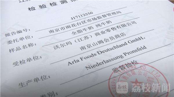 在接到市民投诉以后,南京市雨花台区市场监督管理局铁心桥分局要求商家暂时将同一批次牛奶做下架处理,并安排质检人员对该批次牛奶进行了抽样检查,今天上午,这份由江苏中谱检测有限公司出具的检测报告显示,这款牛奶的蛋白质、脂肪等营业成分符合国家相关规定,此外,三聚氰胺、黄曲霉素、以及重金属等有害物质也没有被检出。执法人员告诉记者,从检测报告来看,该产品符合国家规定,没有问题,但是消费者陈先生遇到的变质牛奶也是事实,南京市雨花台区市场监督管理局铁心桥分局局长邹志英公布了相关的调查结果。
