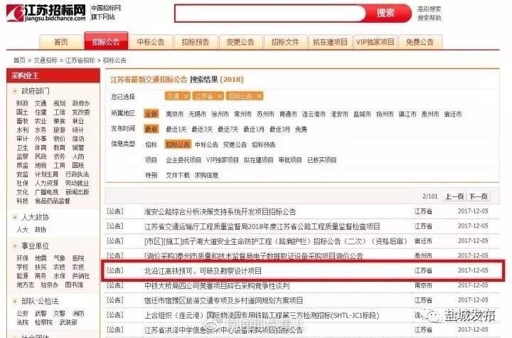 12月5日,江苏省铁路办公室正式发布北沿江高铁预可、可研及勘察设计项目招标信息。这意味着北沿江高铁,正式启动前期工作啦!