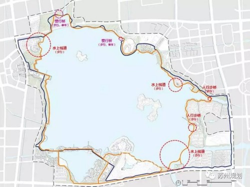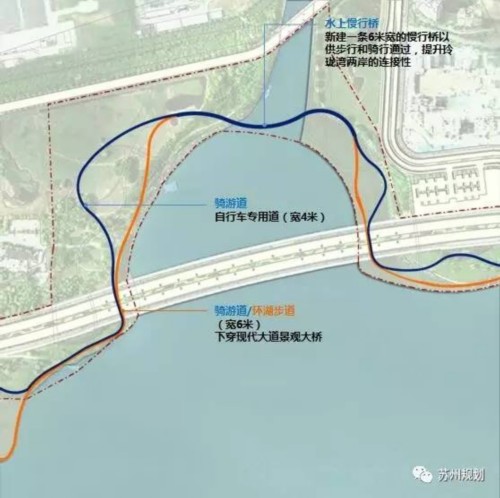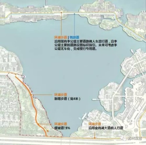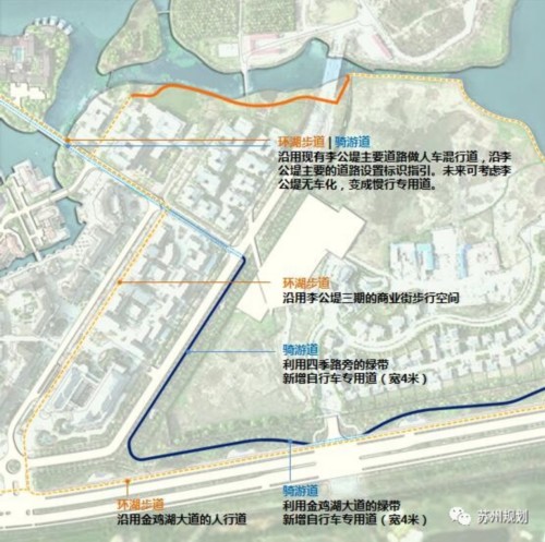 在不久的将来,通过金鸡湖水岸慢行绿道,步行可连通环湖
