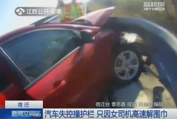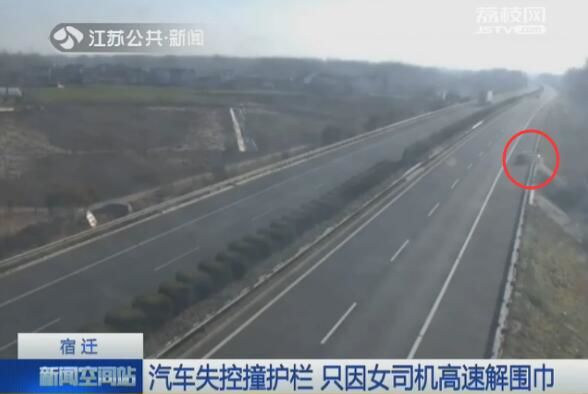 进入冬季,不少市民都穿上肥厚的衣服,也给驾驶带来了不便。近日,宿迁一名女子在开车解围巾时,不慎撞上了高速公路的护栏,现场十分惊险。