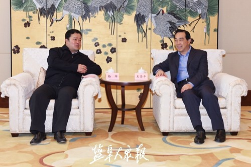图为盐城市委书记王荣平会见中国电子信息产业集团副总经理杨军一行