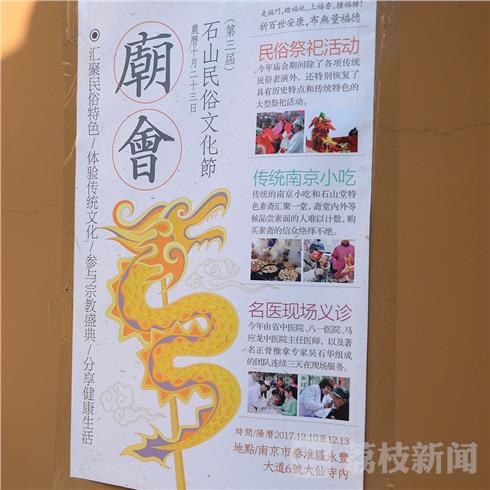 12月10日上午,第三届石山民俗文化节在南京秦淮区石山村大仙寺开幕。此次活动由大仙寺主办,市佛协、秦淮区政协相关领导、区文化局、民宗局等部门领导以及宗教界、文化界人士、信教群众等共2000余人参加了开幕式。庙会活动开幕式由南京知名方言主持人吴晓平主持。