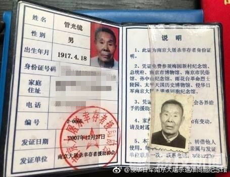 因为恰好躲在大石头下,管光镜侥幸还生。之后的日子里,他在日军烧杀抢掠中东躲西藏,这才幸免于难。在第四个国家公祭日来临前夕,这位南京大屠杀最年长的幸存者与世长辞,享年100岁。