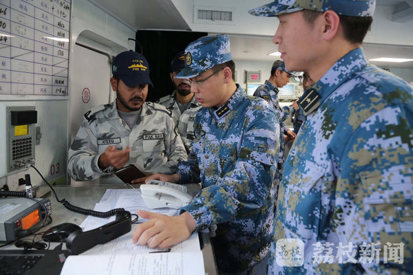 “X—W—6!”“X—W—6!”记者在荆州舰看到,在编队通信演练中,担任此科目演练指挥舰的巴方“赛伊夫”号护卫舰,迅速抢占荆州舰右舷阵位,根据气象情况临机决定使用灯光通信。在灯光闪烁中,双方迅速达成数组通信。在紧接着的编队运动中,同样由巴方担任指挥舰,双方在通信代码交互中,两舰迅速由单纵队转变为横队,又转为方位队,随即又转变为单纵队,三次队形转换一气呵成。