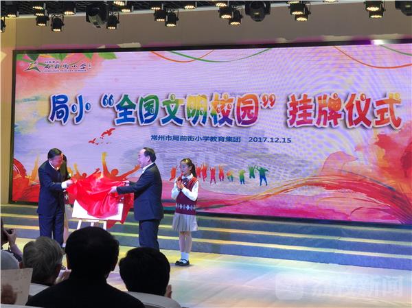 昨天(12月15日)下午,常州市局前街小学举行“全国文明校园”挂牌仪式。