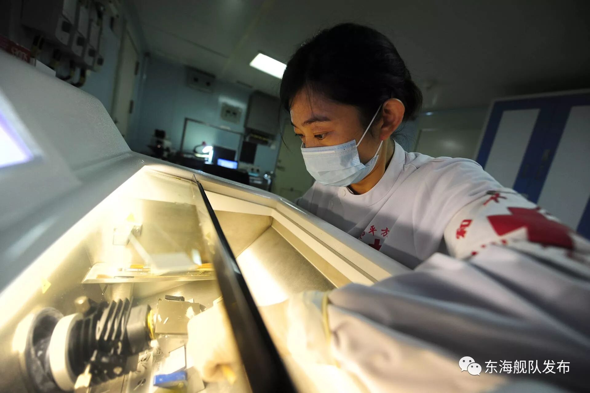 ▲8月23日,在和平方舟主平台,和平方舟医护人员为我驻吉布提保障基地官兵诊疗服务
