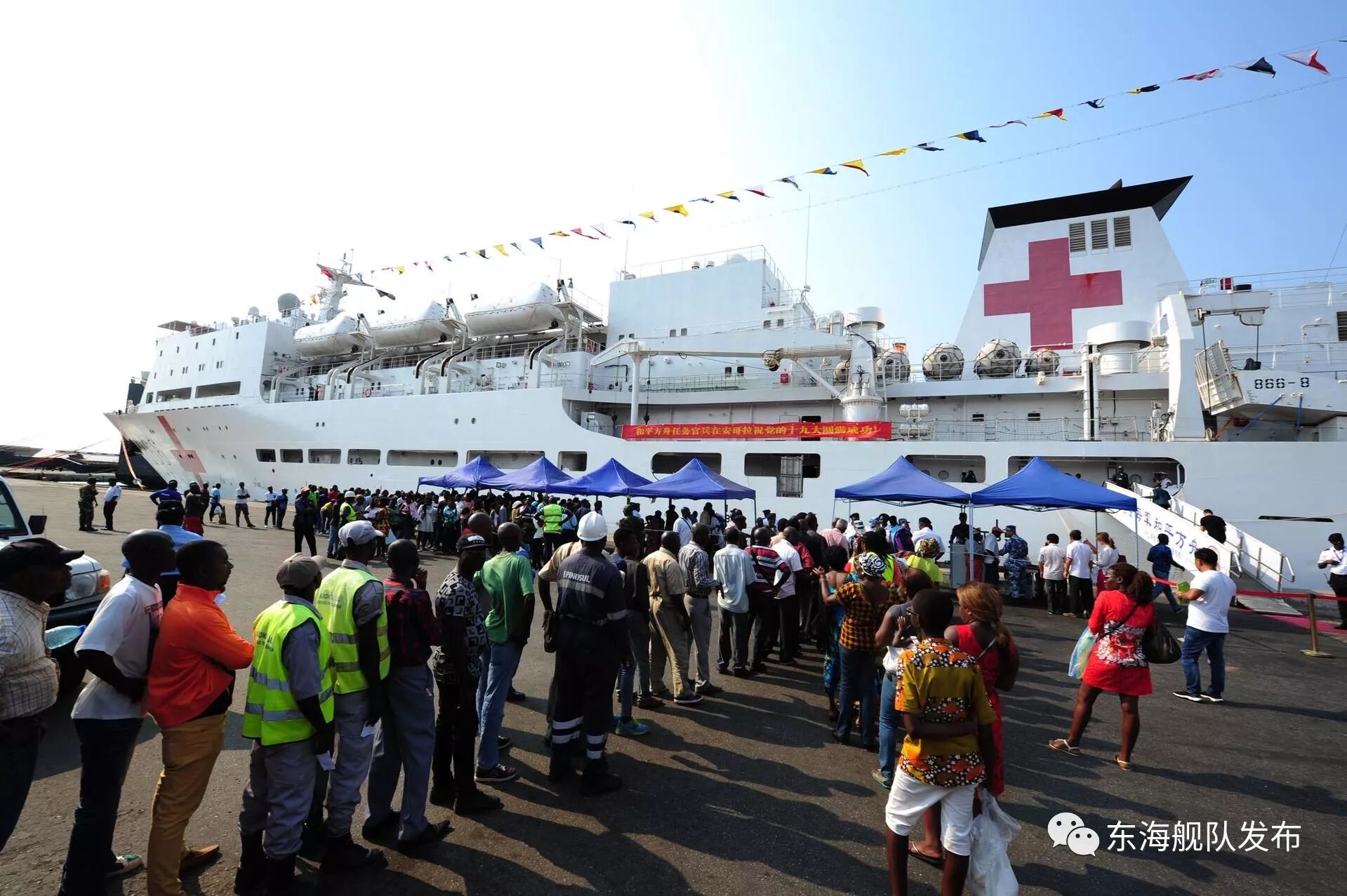 和平方舟医院船,于7月26日从浙江舟山某军港启航,执行“和谐使命-2017”任务,首次环非洲访问并提供人道主义医疗服务,所到国家有非洲吉布提、塞拉利昂、加蓬、刚果(布)、安哥拉、莫桑比克、坦桑尼亚及亚洲东帝汶,在斯里兰卡和西班牙进行技术停靠,并为我护航编队官兵、吉布提保障基地官兵及施工人员进行医疗巡诊。