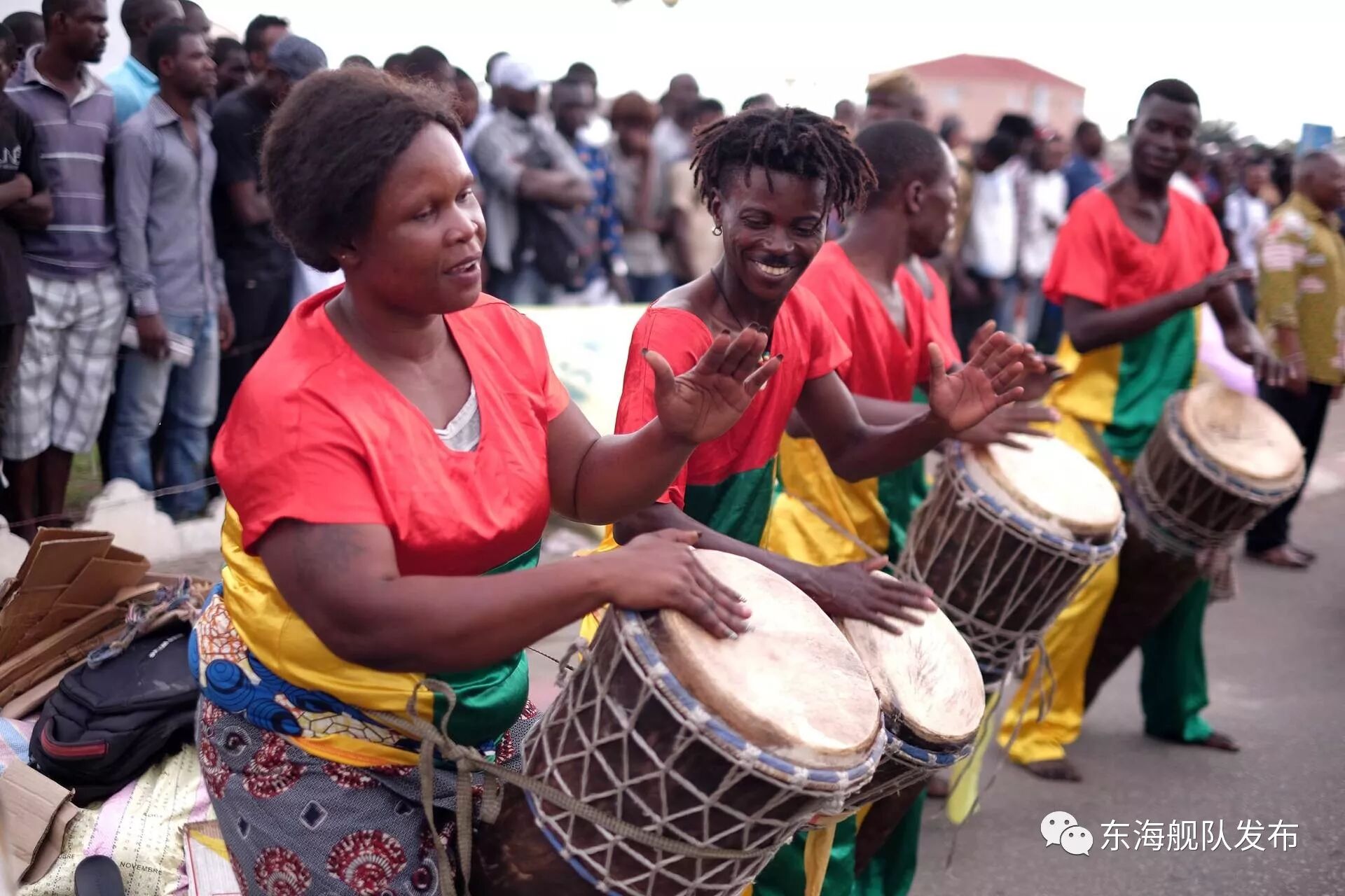 ▲10月16日,刚果(布)民众载歌载舞,欢迎和平方舟医院船官兵到访