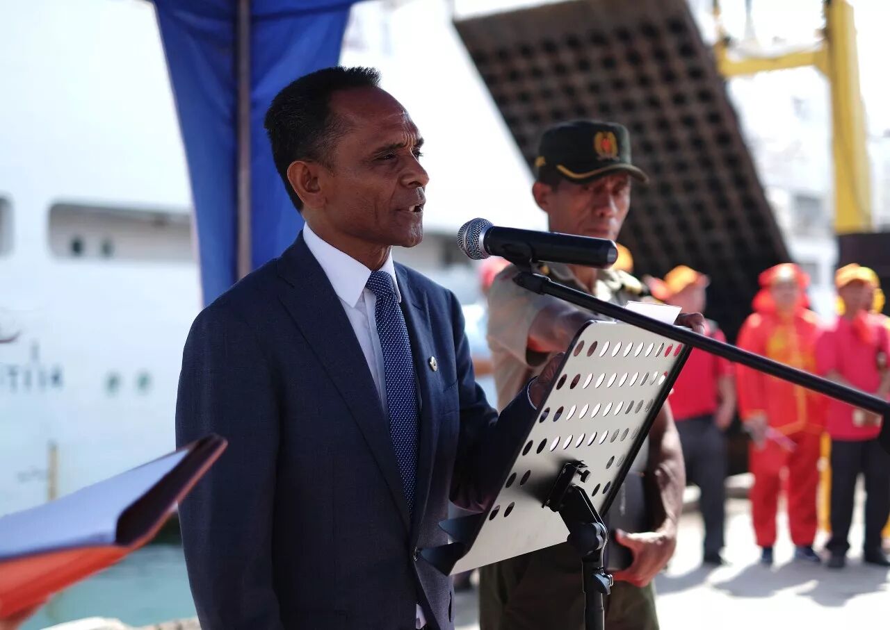 ▲东帝汶防务安全部长索莫丘在欢迎和平方舟医院船访问东帝汶仪式上致辞,代表政府和人民热情欢迎和平方舟首次到访