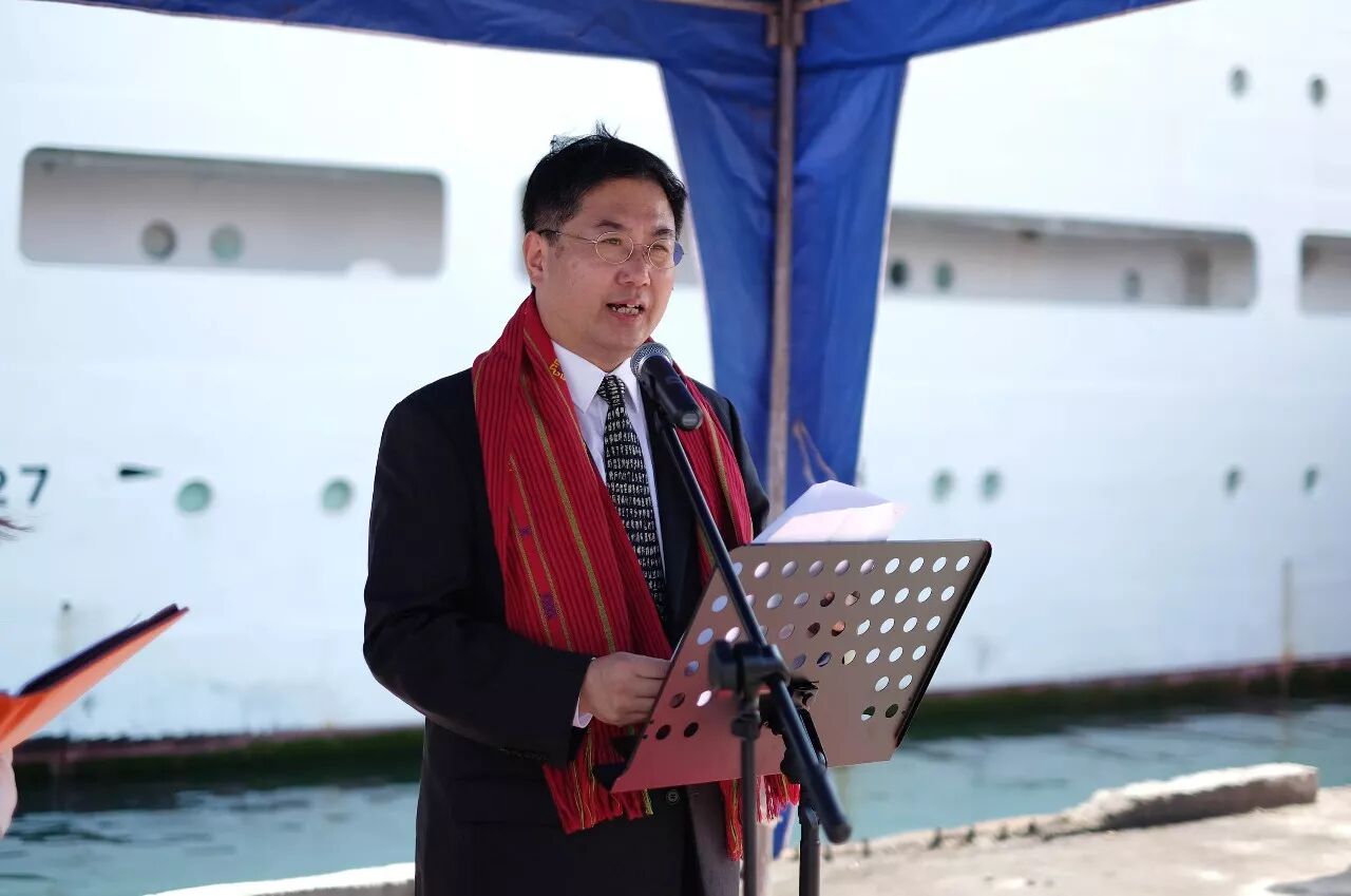▲中国驻东帝汶大使刘洪洋在欢迎和平方舟医院船访问东帝汶仪式上致辞