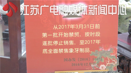 据国家林业局介绍,我国现有象牙定点加工企业34家、象牙定点销售场所143处。今天上午,记者来到南京工艺美术大楼,这里是南京9个象牙许可销售点之一,离全面禁售令还剩下十天左右,商家打出了3.8折、一口价的促销告示。这里销售的主要是广州牙雕,又称南派牙雕。
