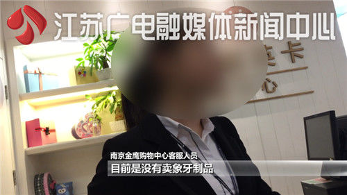 南京金鹰购物中心客服人员:“撤柜了,我们这柜台更换都很快的,目前是没有卖象牙制品。”