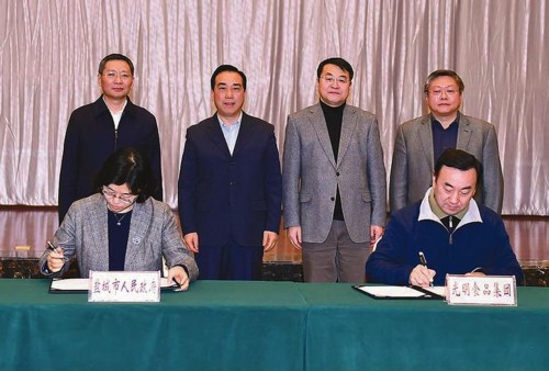 12月19日,盐城与光明食品集团签订战略合作框架协议,双方将在共建副食品生产基地、食品加工基地、优质蔬菜水果生产基地、共同推进城市及特色小镇建设等方面开展战略合作。盐城市委书记王荣平、市长戴源在盐城会见光明食品集团董事长是明芳一行。
