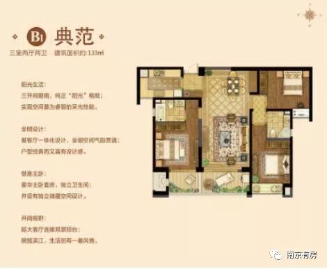 建筑面积约133㎡:3室2厅2卫↓↓↓