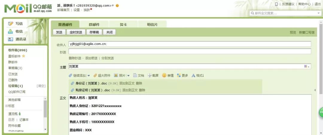 2、正文内容:购房姓名+身份证号+购房证明编号+联系方式+职业顾问姓名
