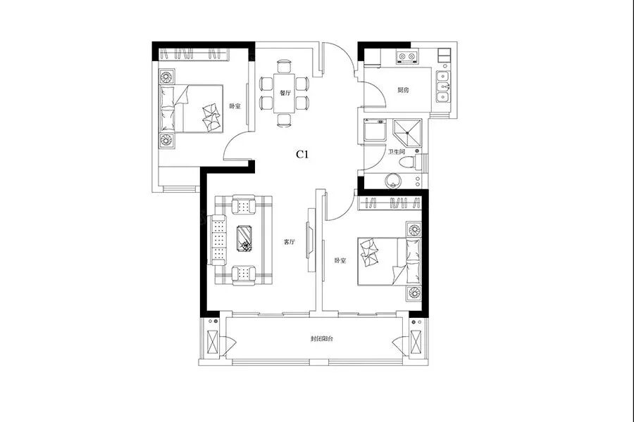105㎡2室2厅1卫↓↓