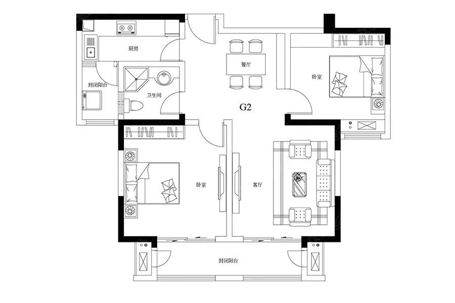 86㎡2室2厅1卫↓↓