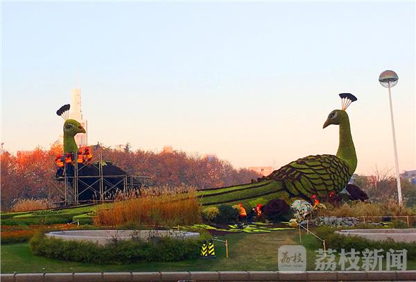 12月22日上午,南京鼓楼广场两只绿孔雀迎来建成以来的第三次“换妆”。