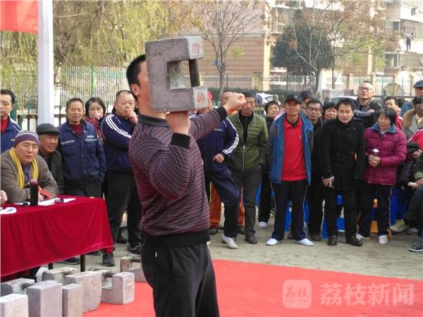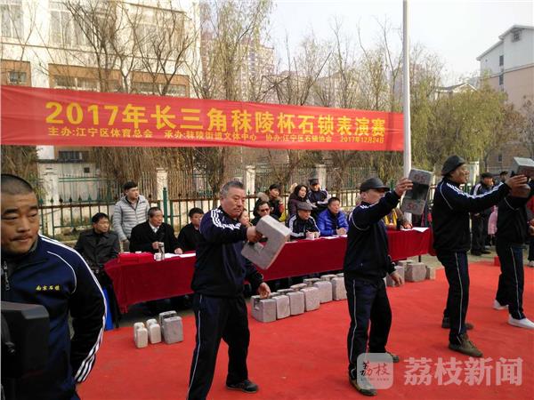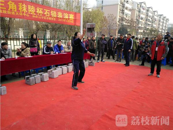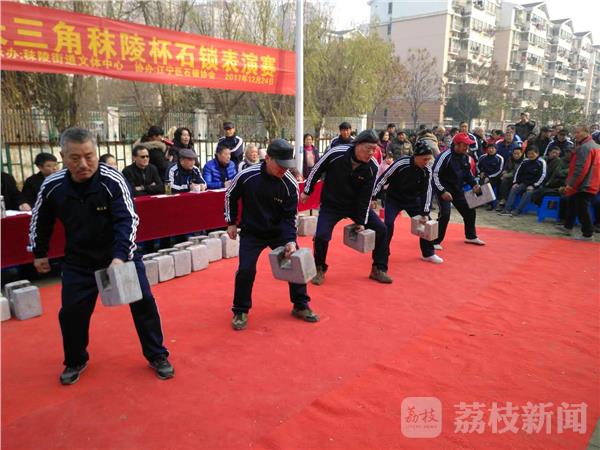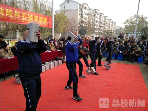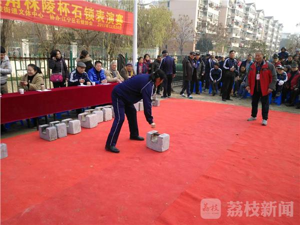 昨天(12月24日),寒风袭人,可在南京江宁区秣陵街道殷巷社区的石锁运动场上,人头攒动,热气腾腾,加油声、赞叹声此起彼伏。2017年长三角秣陵杯石锁表演赛吸引了南京及周边宜兴、句容、仪征、金坛等地500余名石锁爱好者展现技艺。周边市民争相前来观赛。