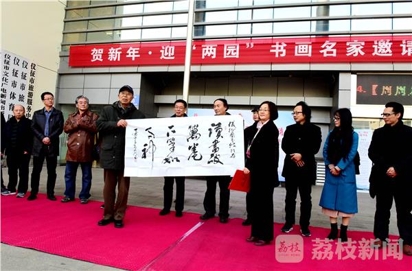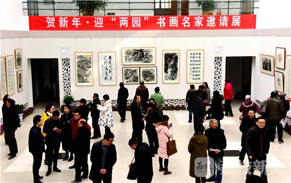 2017年12月26日,扬州市的仪征图书馆画廊,贺新年·迎“两园”名家书画邀请展正在进行,来自北京、南京、常州、扬州以及仪征当地的书画家应邀出席。这是仪征市文化界纪念毛泽东诞辰124周年,迎接2018年新年的活动之一。