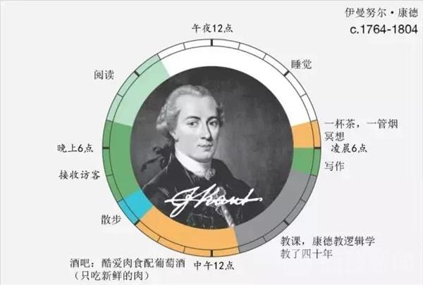 从时间表中可以看出,伟人们并没有像大家想的那样,为了工作、创作而“废寝忘食”,而是作息规律,计划周详。大部分人每天坚持散步及运动,同时保持与人的交流,如去酒吧坐坐、写信、聊天等。