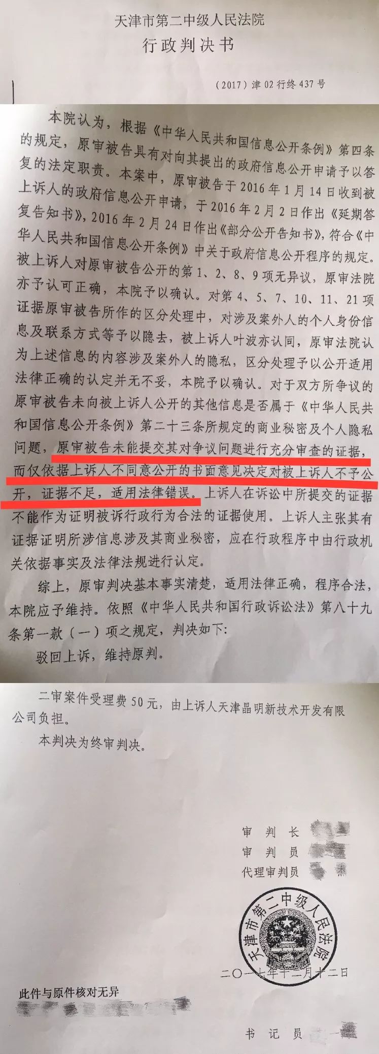 一审法院责令被告滨海新区市场监管局十五日内对原告叶波的政府信息公开申请重新作出答复,但涉事企业——天津晶明新技术开发有限公司不服该判决结果,随即向天津市第二中级人民法院提出上诉。
