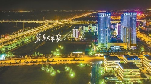 光影变幻、车流不息,放眼高架两侧,霓虹闪烁的灯光如同城市耀眼的明星,引得大家一阵阵赞叹:美丽盐城景色新,满城风景入画来,现代化、国际化、生态化、特色化的沿海中心城市正快步向我们走来。