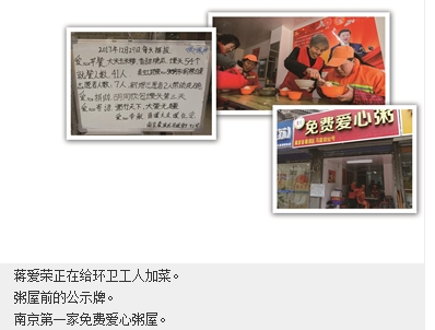 来南京开设第一家免费爱心粥屋,这让蒋爱荣感到压力。因为摆在她面前最大的问题就是房租太贵。在耗费了半个月的时间后,她才选定了一处位于马道街的门面房,然后开始采购粥屋必要的设备。