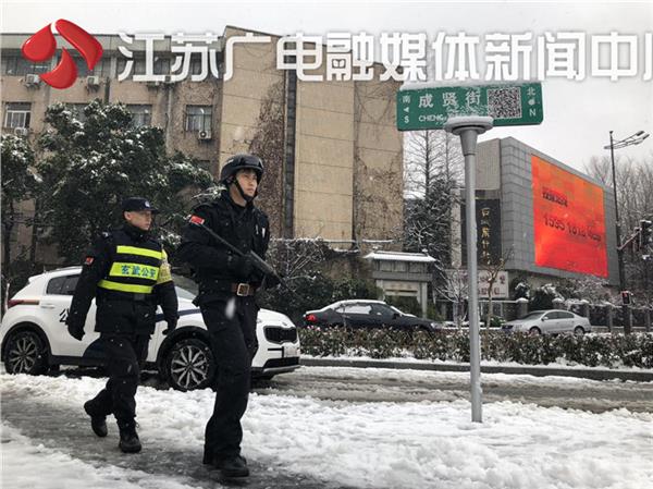 2018年1月4日上午,南京市公安局秦淮分局民警接到报警,一老太在户部街某超市边摔倒,接警后,民警迅速赶往现场,一把抱起老人家,冒着大雪将老人送往附近医院,并最终与老人的儿子取得联系。暴雪袭城,南京市公安局玄武分局迅速组织警力深入街面开展巡逻防控、服务群众工作。分局巡逻民警沿北京东路一线开展武装巡逻工作,及时发现排除街面积雪隐患,提醒街头行人小心慢行,搀扶帮助滑到群众,以忠诚的坚守、无私的奉献诠释担当精神和爱民宗旨。