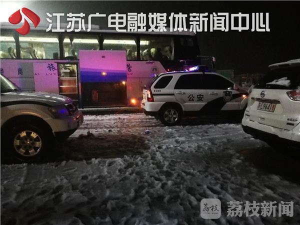 4日凌晨3点左右,因雨雪加大,大客车禁上高速,高速一大队又派出两辆警车冒雪天路滑的危险,前往驳载车辆停留的窦庄服务区,护送驳载大客车前往镇江收费站。最后,被困乘客被安全转移至驳载车辆上,并分两批护送前往镇江南高铁站。而驾驶人交通违法行为正在进一步调查处理中。