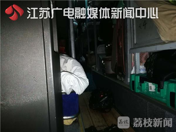 3日晚上10时许,一名群众急急忙忙跑到镇江高速一大队镇江收费站岗亭,向民警举报:自己乘坐的大客车严重超员且车辆抛瞄需要救援。民警立即跟随举报人到达车辆抛锚处。 民警冒雪到达现场后发现,大客车上两名驾驶员都不在车上,询问乘务员张某(女),张某声称两名驾驶员下高速公路去找修理厂去了,然而乘客们反驳道:两名驾驶员是听见乘客要报警而逃走的,随即民警对车辆进行了检查。
