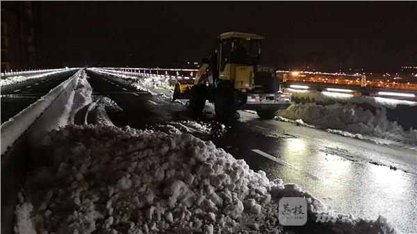 为及时清理道路积雪,确保交通畅通和行人出行安全,综管办多名同志已经48小时没合眼。从降雪开始起,综管办就安排扫雪辊、装载机等大型设备,保持不间断清理道路,同时辅助撒布融雪剂。1月5日凌晨2:00大雪渐止,综管办迅速安排60余名工作人员,出动装载机、工程车等大型机械清运积雪。截至1月5日上午6:00时,综管办已出动人员200人次、机械数量50台班,清运积雪60余车。目前站区各主次干道积雪已全部清理完毕,整体通行顺畅。