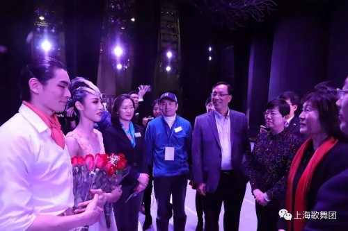 演出结束后,李小林会长等领导上台与演员握手,祝贺演出圆满成功,“感谢上海歌舞团全体演职员!你们是文化交流的使者!你们精彩的演出,展示了中国文化艺术魅力,传递了中国人民关注环保、关心人与自然和谐相处的和平友好理念,为中国民间对外文化交流事业做出了积极的贡献!”章启月总领事称赞:“观看了舞剧《朱鹮》的表演,让我非常感动!表演非常精彩!生态环境的保护是当今世界共同关注的一个话题,《朱鹮》的主题具有普适性。”