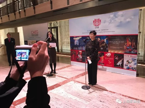 演出前,中国人民对外友好协会会长李小林女士,中国驻纽约总领事章启月女士分别在贵宾答谢会上致辞发言,预祝舞剧《朱鹮》美国巡演顺利圆满。