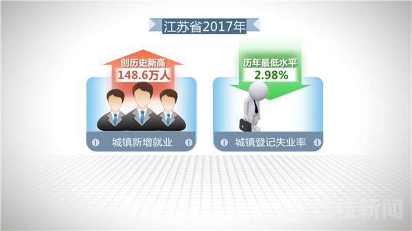 记者从全省人力资源和社会保障工作会议上获悉,江苏省2017年城镇新增就业达148.6万人、创历史新高。