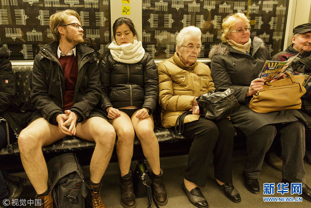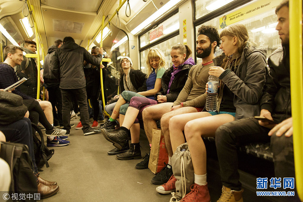 1月7日,德国柏林,民众参加一场名为“无裤地铁之旅”的年度快闪活动。(图片来源:视觉中国)