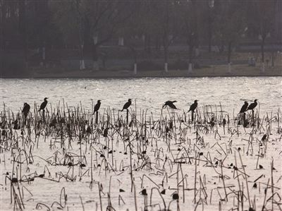 在南京寒冷的冬季,普通鸬鹚很常见,它们从各地千里迢迢聚集而来,形成一道独特的风景。对市民来说,在市区想观赏冬鸟,首个理想场地就是玄武湖公园。宽阔的湖面、良好的生态环境、丰富的鱼类资源,每年吸引了不少野生鸬鹚在此越冬,玄武湖已成南京野生鸬鹚最大的理想越冬湖。