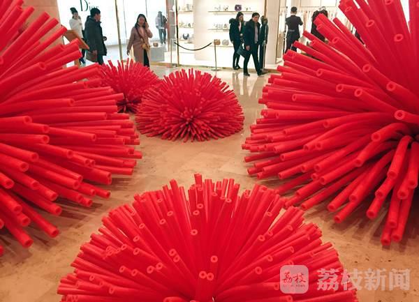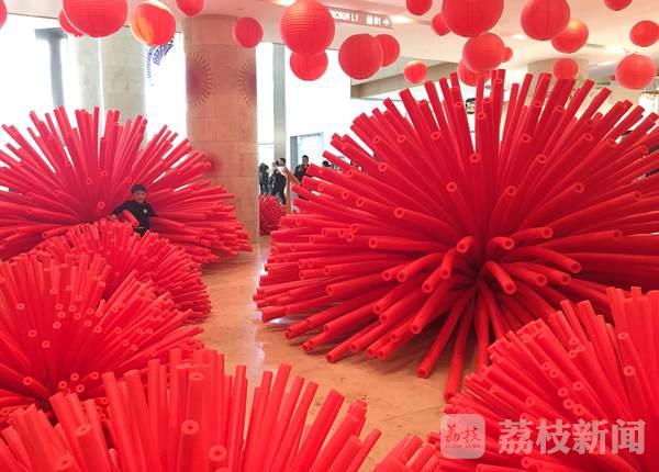 近日,南京许多商家动手装饰店面,迎接即将到来的新年销售旺季,店堂内的“中国红”与“中式圆”让新年的喜庆扑面而来。