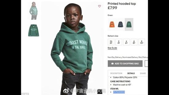 环球时报 瑞典服装品牌H&M近日因种族歧视广告麻烦不断。继在社交媒体上遭到声讨之后,英国《卫报》14日称,在H&M日前发布的广告照片中,一名黑人男孩所穿外套上印着“丛林中最酷的猴子”几个字,被批种族歧视。南非一些抗议者冲击数家H&M门店,当地警方不得不用橡胶子弹驱散抗议人群。 详情>>