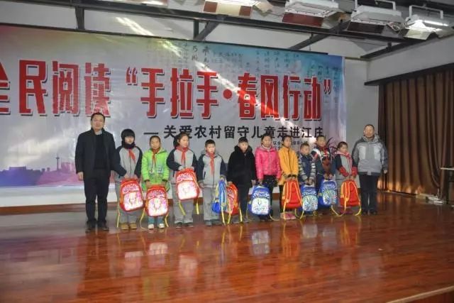2017年1月24日贾汪区全民阅读办开展的全民阅读春风行动 “关爱农村留守儿童”活动,图为向农村留守儿童赠送惠民书包。